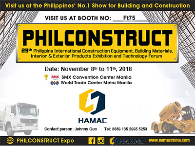 Dear Customer, Hamac is attending the coming Philconstruct 2018( Philippine International Construction Equipment, Building Materials, Interior Exterior Products Exhibtion and Technology Forum) from 8 t ...