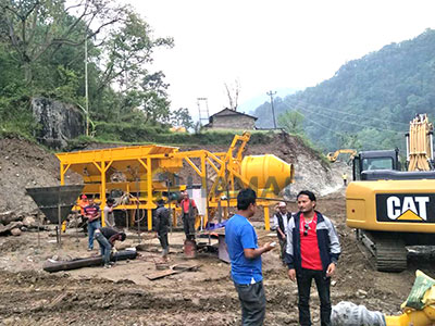 After the goods arrived Pokhara, Nepal. We dispatched our technician came to there to install the machine for our customer. This mobile concrete batching plant is specially designed, its discharging height is 1.7m, can be moved easily in different sites. It is suitable for the small projects.