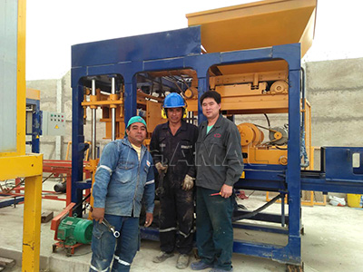 QT6-15 concrete block making machine. After three weeks working time, our experienced technician finished their work for installation and training for local workers.