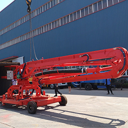 HGY15 Concrete Placing Boom Was Sent to Middle East on June 24th. This concrete placing boom can be moved on wheels, so it can save the transport cost when moving from different working sites. This customer customize equipment from us because his special requirement for the technical procedure and the capacity. All of the electric components of this machine are used world famous brand, most of them Are from ABB.